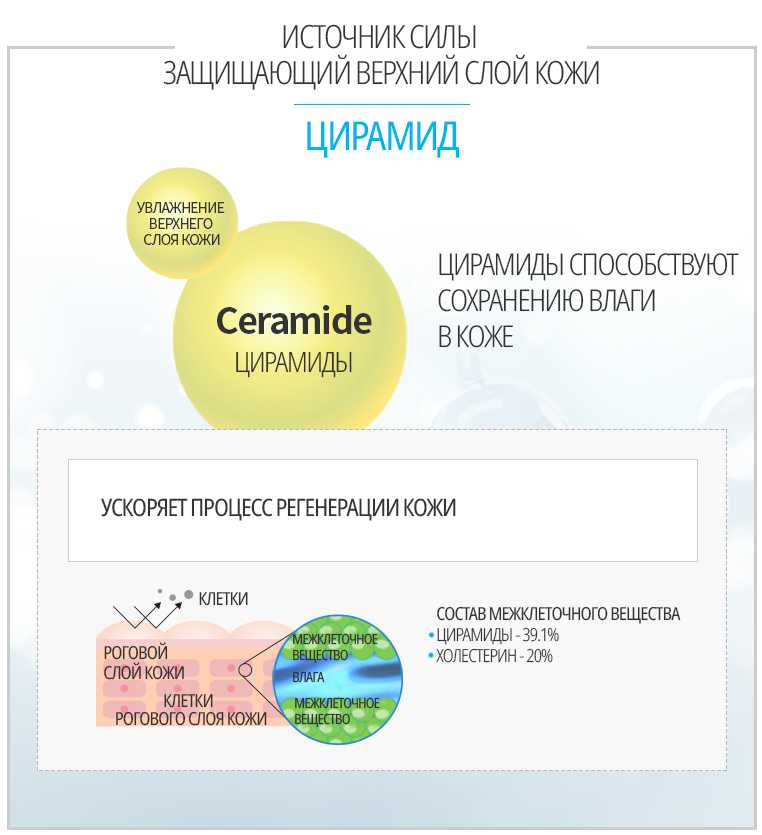 - Цирамид (Ceramide) - источник силы для защиты верхнего слоя кожи. Цирамиды способствуют сохранению влаги в слое кожи под верхним роговым слоем.